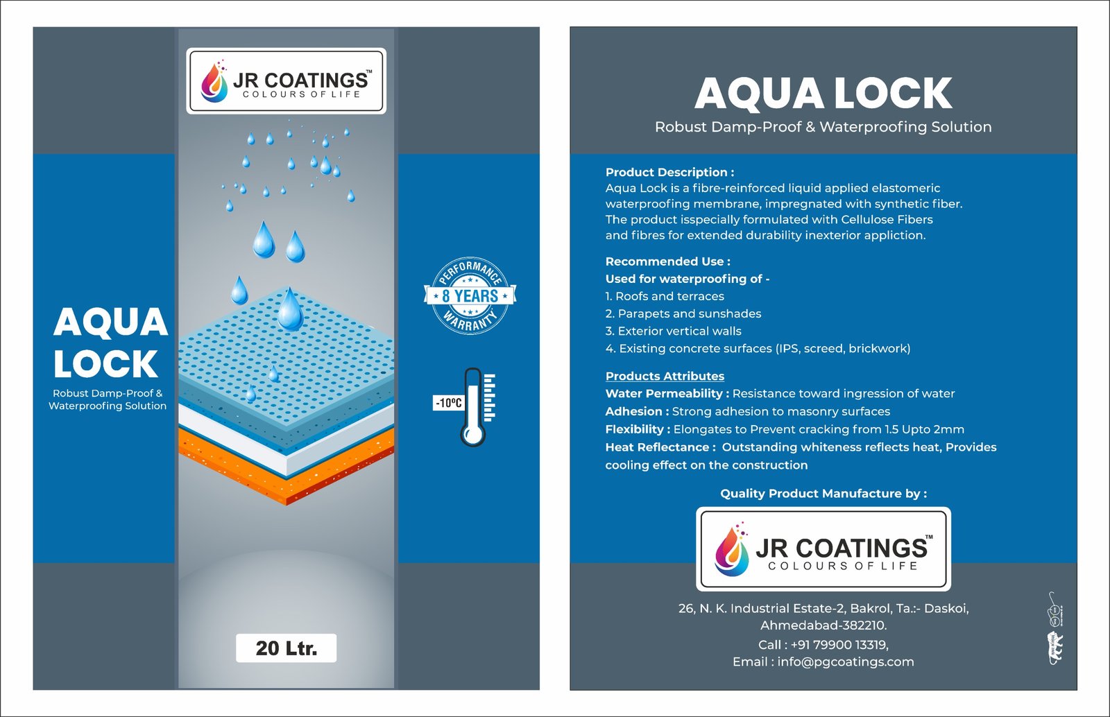AQUA LOCK is a fibre-reinforced, elastomeric waterproofing solution with excellent adhesion, flexibility, and heat reflectance. Ideal for roofs, walls, and concrete surfaces, offering long-lasting protection against water ingress.